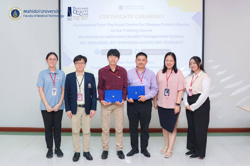 ศูนย์พัฒนามาตรฐานและการประเมินผลิตภัณฑ์ คณะเทคนิคการแพทย์ ม.มหิดล จัดโครงการอบรมเชิงปฏิบัติการในหัวข้อ ISO/IEC 17043:2023 Requirements & ISO13528:2022 Statistical methods & Management Systems and Implementation ให้แก่บุคลากรจาก Jigme Dorji Wangchuck National Referral Hospital, Khesar Gyalpo University of Medical Sciences of Bhutan ประเทศภูฏาน และ บริษัท Alfa Diagnostik ประเทศมาเลเซีย